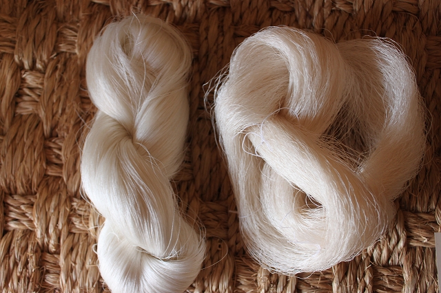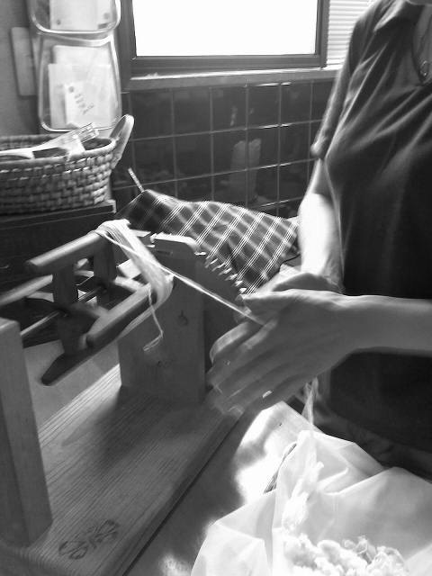 真綿にしてから手で縒りをかけています。