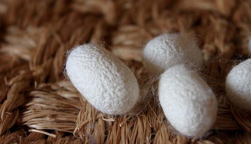 繭ひとつ(一粒)から長い糸が(約1,300m)ひかれます。全てそれは、お蚕の命の息吹です。