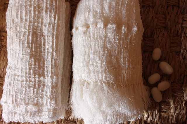 繭になった形の表面をそのまま布として仕上げ世に送る...