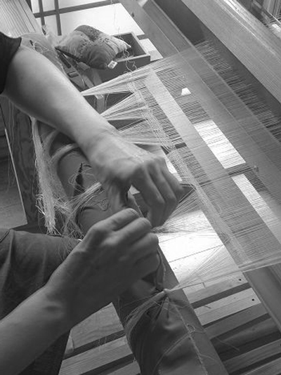 縦糸は800本~3800本位の本数で製作する用途に合わせて織っています。